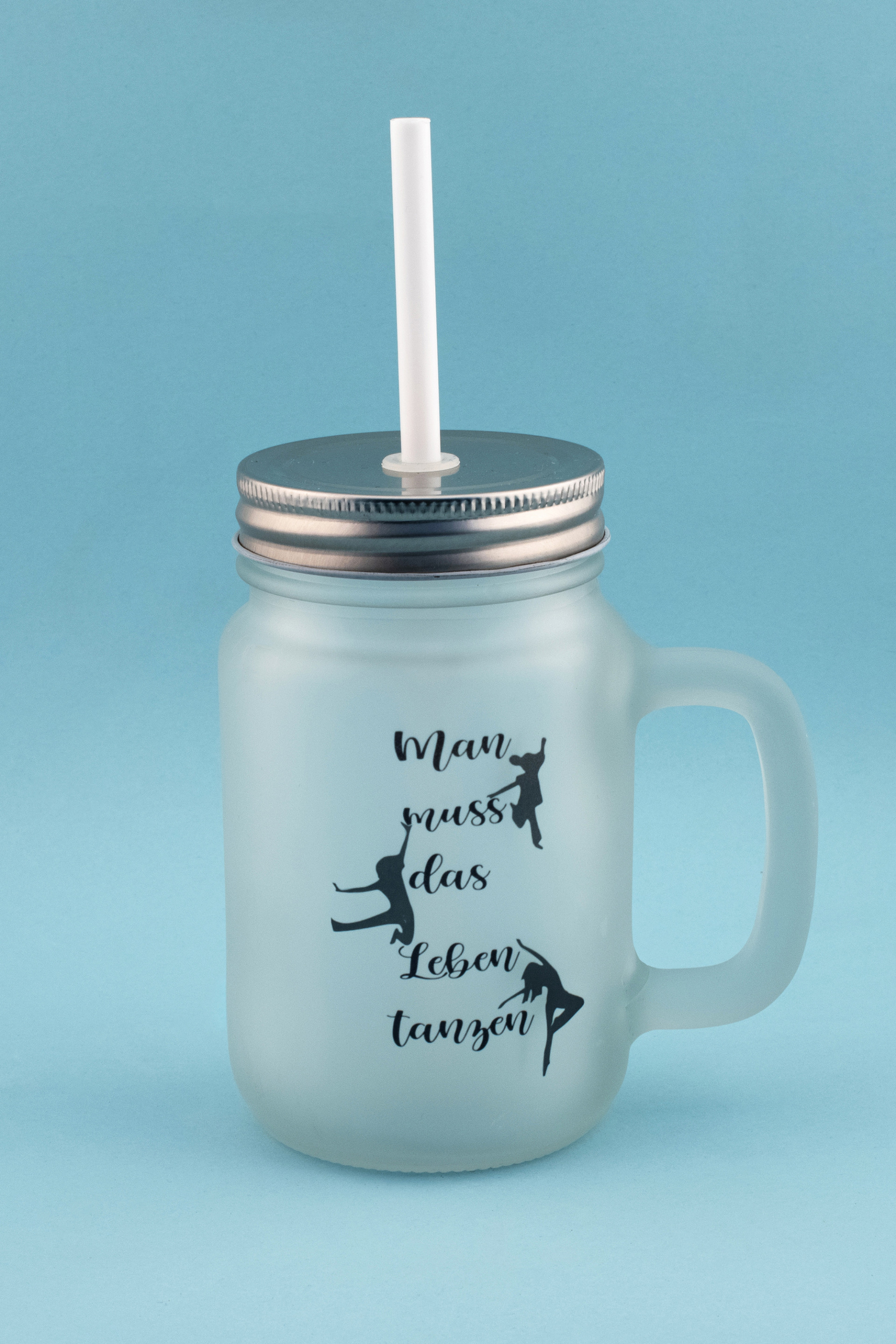 1 Glas mit Griff und abnehmbarer Drehdeckel inkl. Röhrli