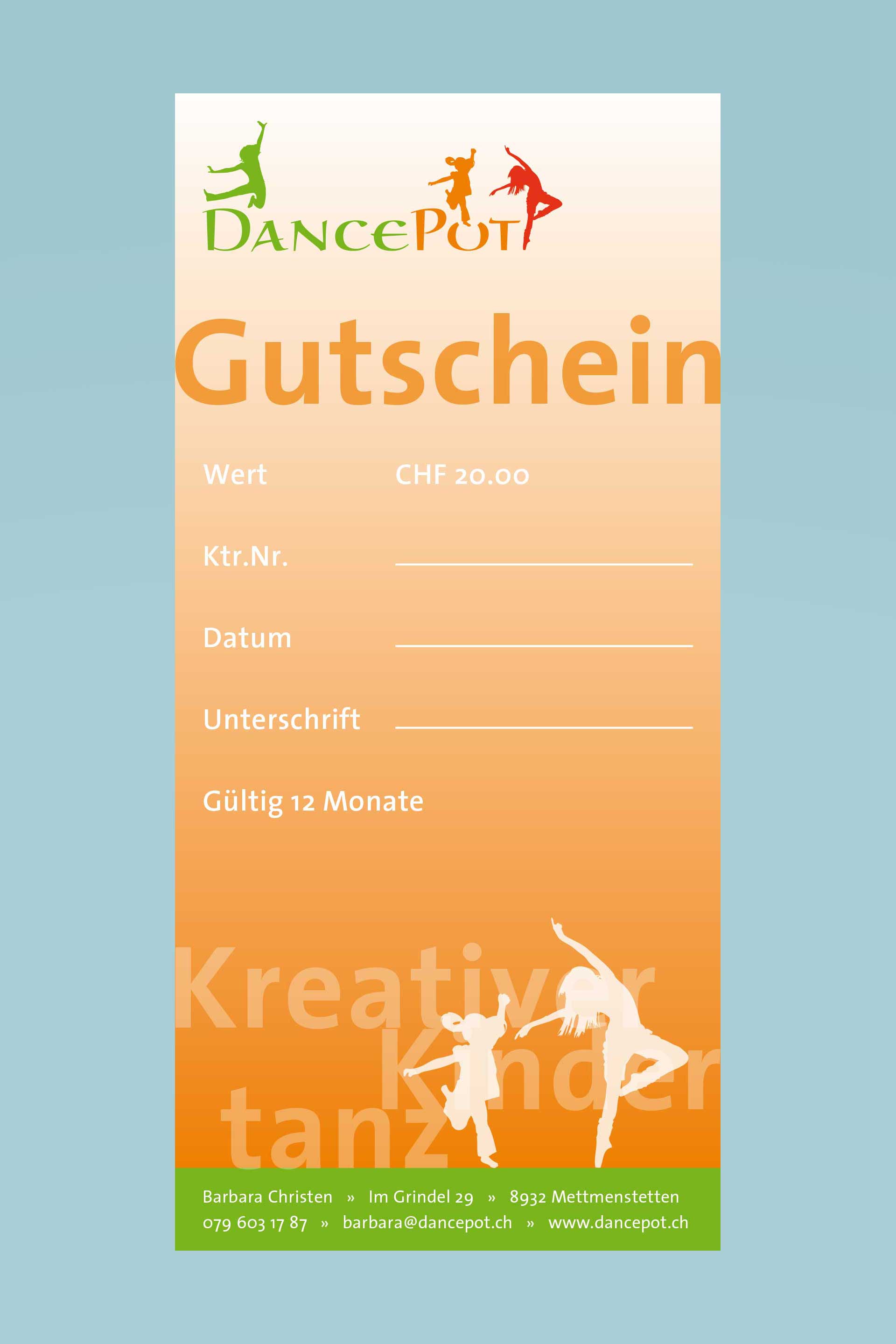 Ein Geschenk-Gutschein gültig für alle Angebote von Dancepot, sei es etwas cooles aus dem Shop oder für die Bewegungslektionen.